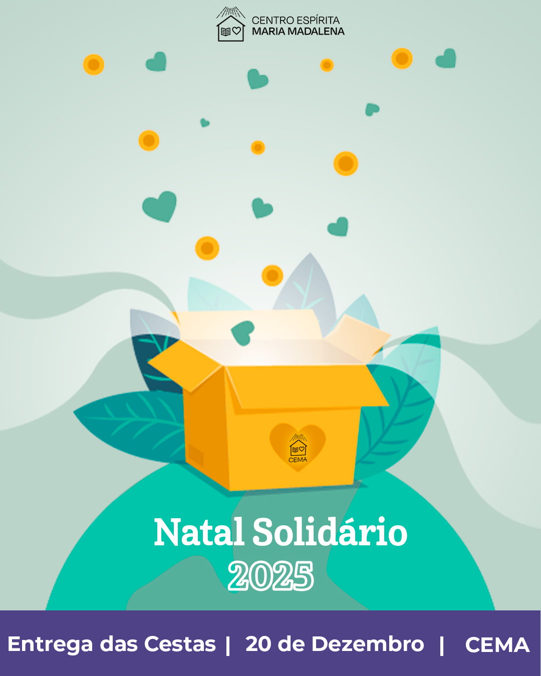 Com imensa alegria, convidamos todos para o momento mais especial da nossa campanha: a entrega das cestas do Natal Solidário, que acontecerá no dia 20 de dezembro no CEMA.